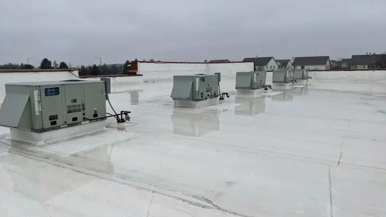 - TPO Roofing: Energy-efficient white membrane systems that reflect heat and lower cooling costs, reducing roof surface temperatures by up to 50 degrees.
